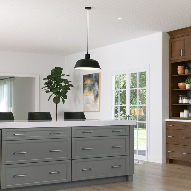 Americano Standard solido grigio Shaker in legno modulare armadi da cucina all'ingrosso pronti per assemblare ripiani in resina laminata di marmo